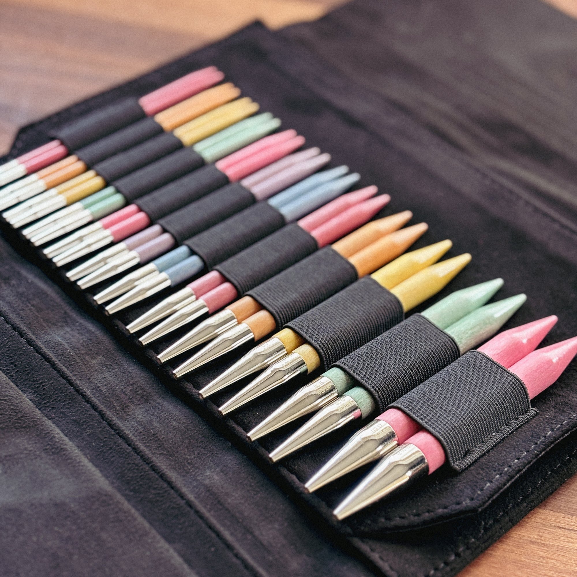 - Each Lykke Colour Interchangeable Needle Set comes neatly packaged in a matching vegan leather case with everything you need to get started